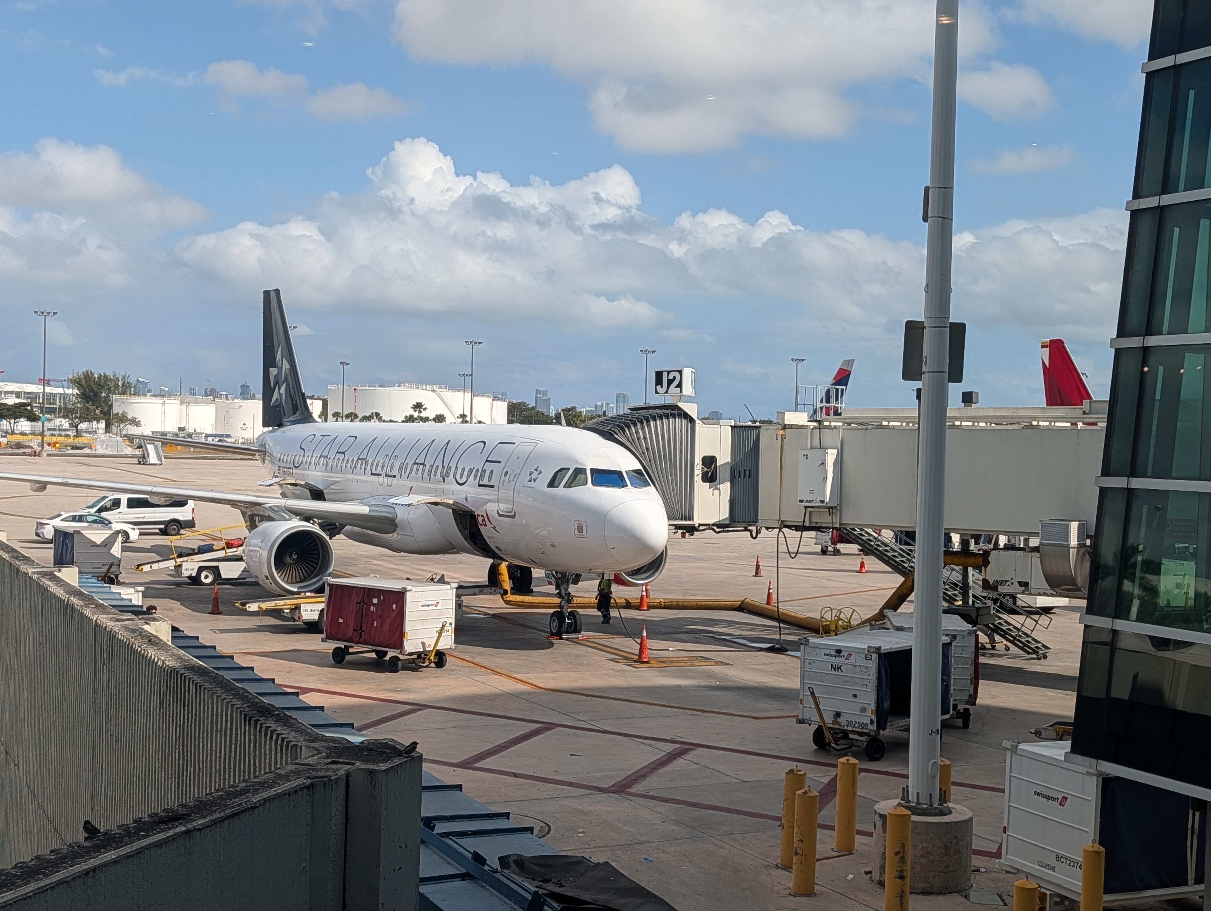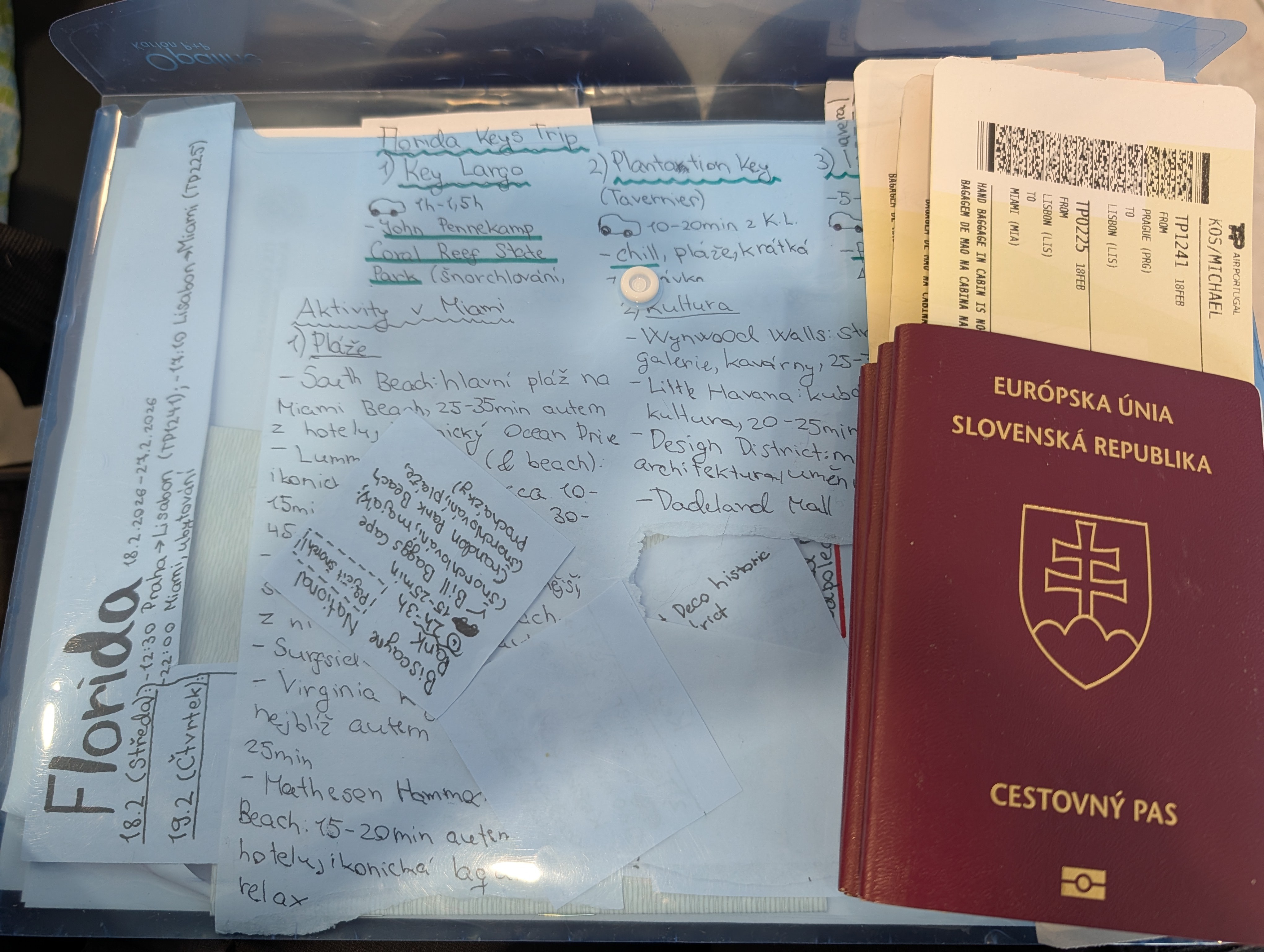 Druhá komplikace nastala, když jsme u odbavení velkého kufru zjistili, že zavazadlo se z rezervace nepřesunulo dál a TAP o ní neví. Takže muselo být zaplaceno znovu. Nevím, jak se to pánovi povedlo, ale na let do Lisabonu dal alespoň děti k sobě a na let do Miami už jsme měly místa u sebe (když jsem to zkoušela zarezervovat k sobě doma, tak mi to jen strhlo a vrátilo peníze za vybrání místa, ale nic se nestalo..).Třetí komplikací bylo to, že jsem ráno nestíhala snídat a snědla jsem si tortillu ještě než otevřeli přepážku na check-in.