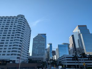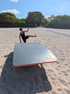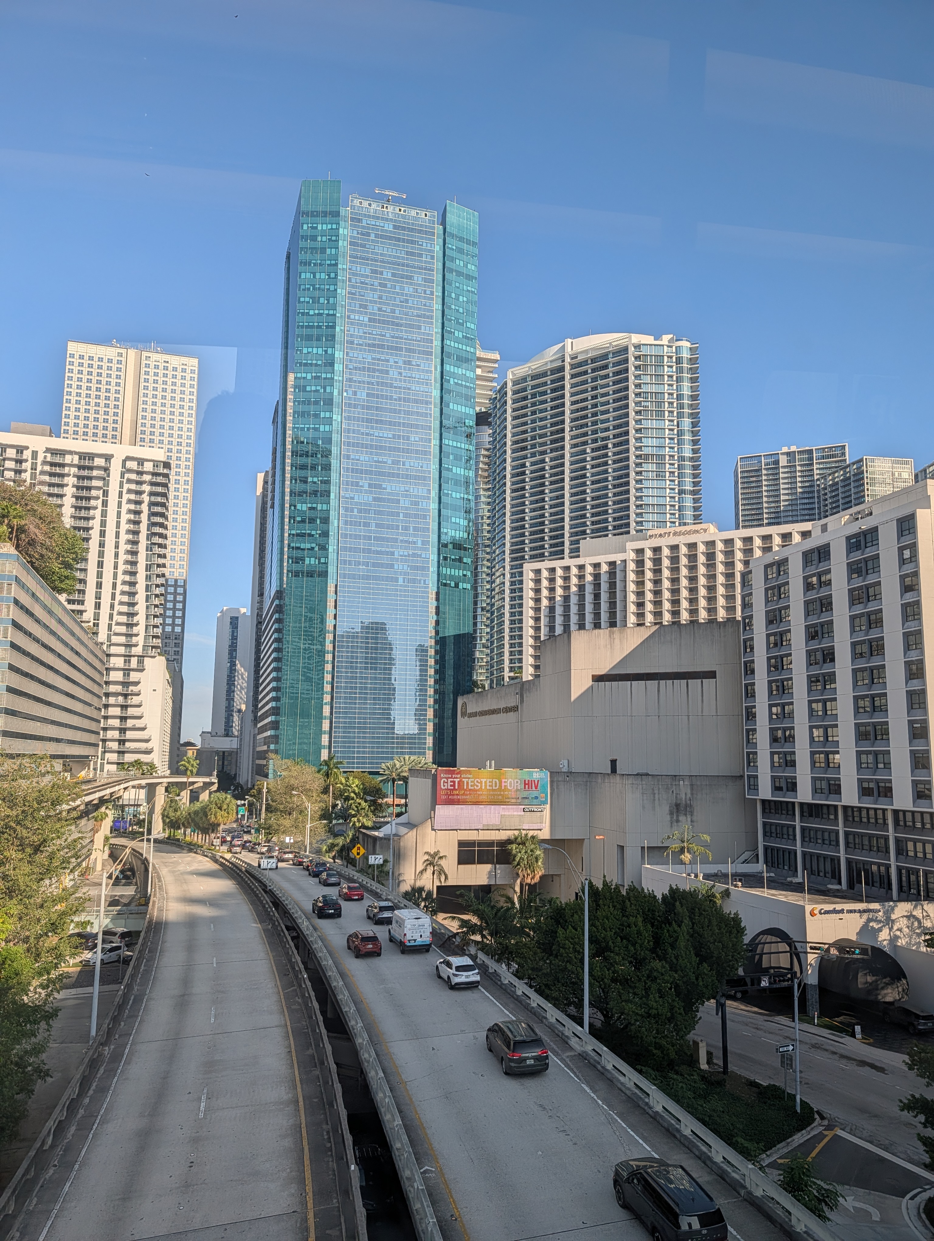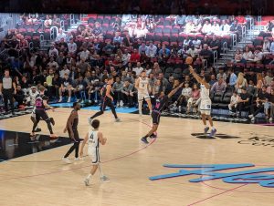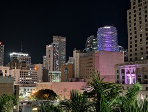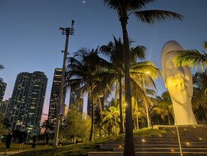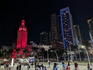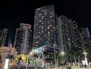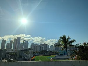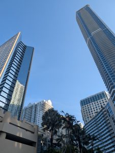 Plna endorfínů jsem dojela zpátky na hotel, kde se na mě všichni strašně těšili (čekali na mě totiž se snídaní) :). Pak jsem opravdu ja chvíli usnula. Plán na odpoledne byl jasný – hamburger ve foodtrucku, vidět formuli Mercedes Benz u Brickellu, Designer District a podle času ještě procházka u moře u Kaseya haly, kde v 8 začíná zápas NBA. Vyrazili jsme jako rodilí Miamani (?) na vlak a vystoupili v Brickellu. Foodtruck z google maps měl zavřeno, takže jsme omylem šli do blízké restaurace s hamburgery, kde měli nejlepší salát, jaký jsem v životě jedla a ochutnali jsme jeden z nejlíp hodnocených hamburgerů v USA. Na pozadí pouštěli biatlon, kde Voborníková vyhrála na ZOH bronz, prostě to bylo supr :). Pak ještě kafe z pražírny vedle a byla jsem fakt spkojena :).