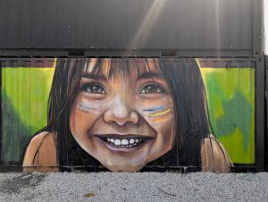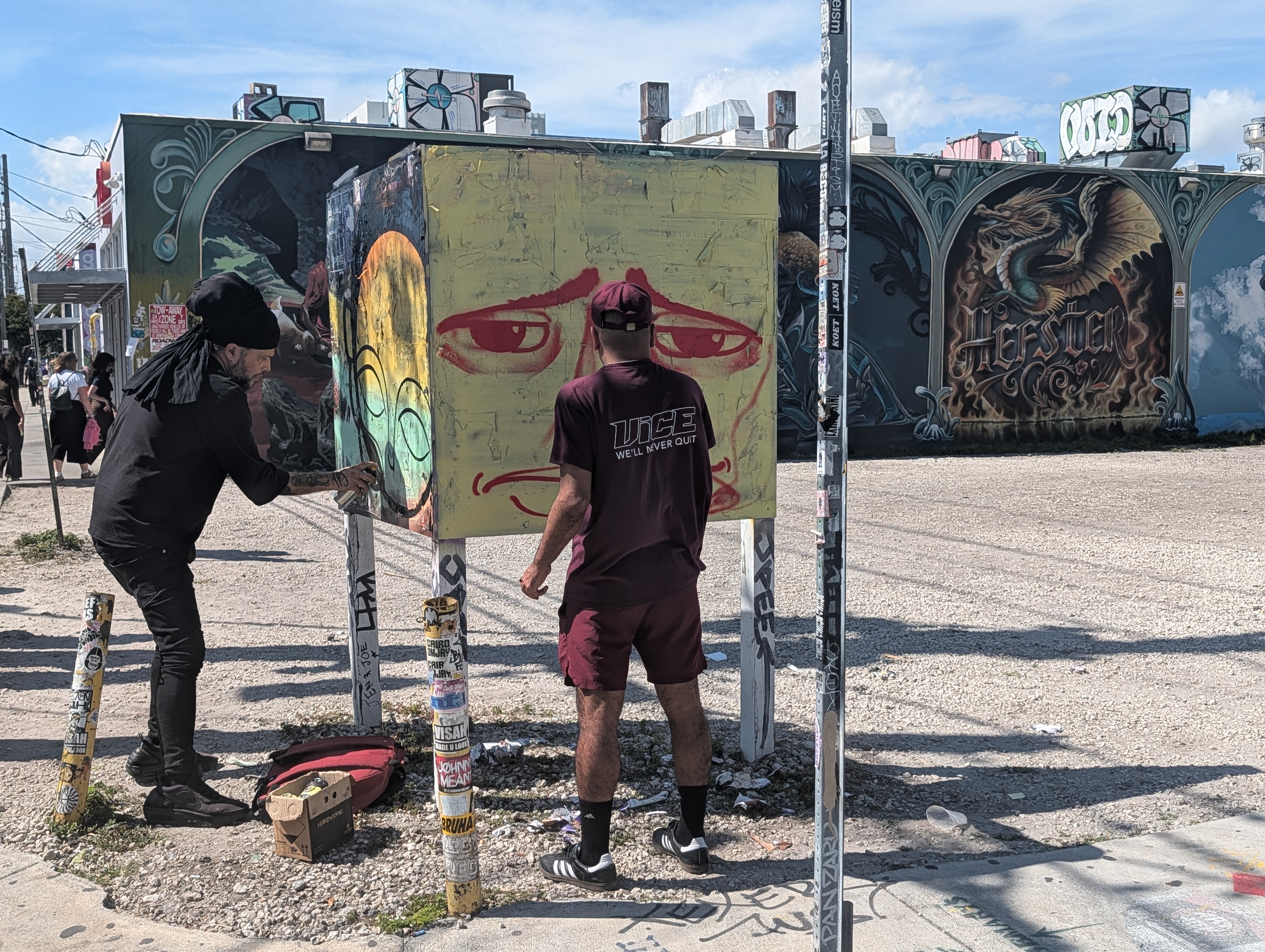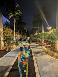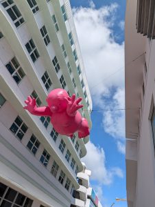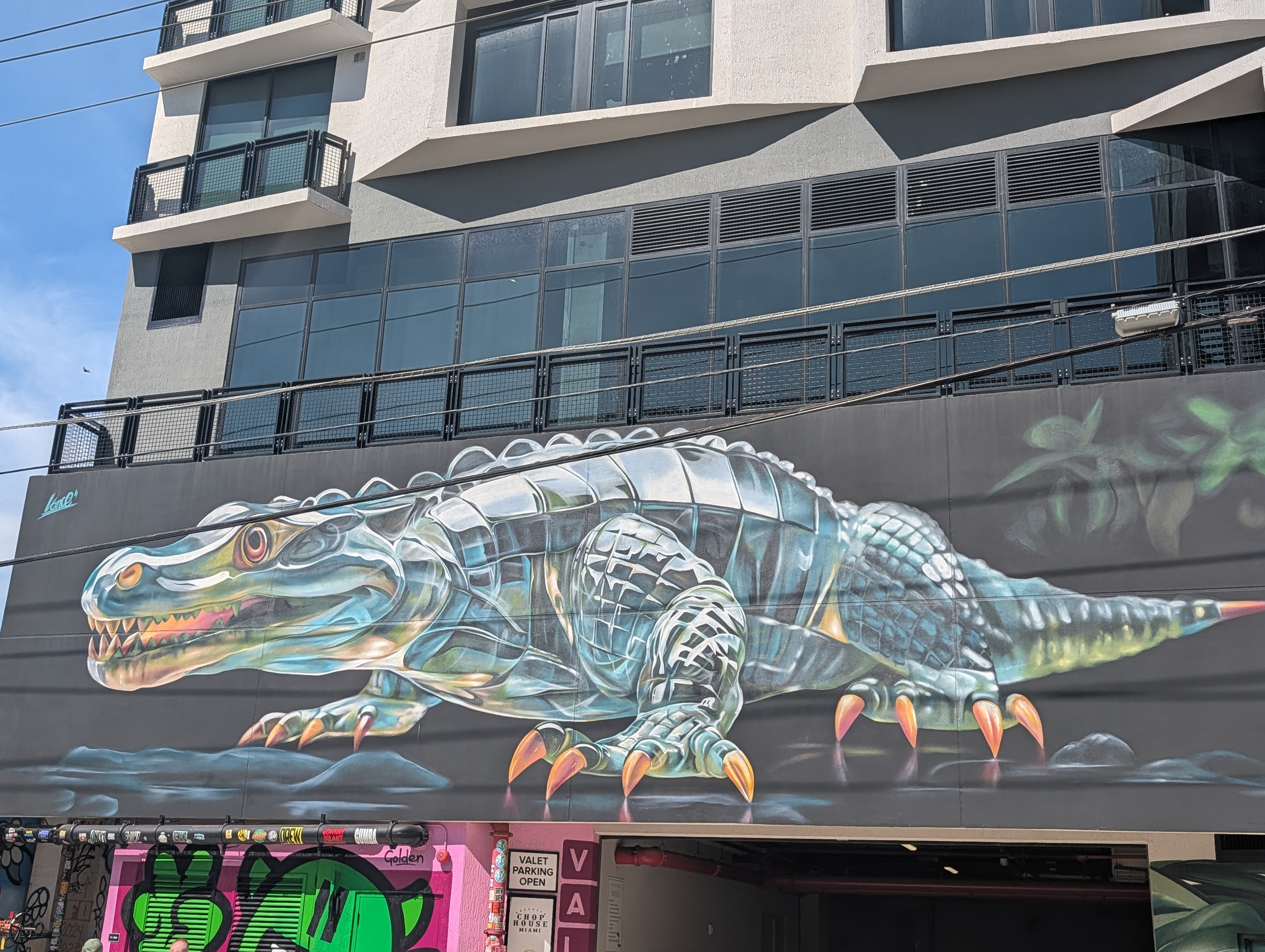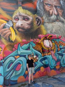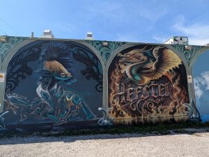 Další zastávkou byla čtvrt Wynwood Walls s graffiti a murals. Původně jsem myslela, že bychom se tam zkusili dostat autobusem, ale když mi aplikace Movit dokázala zablokovat platební kartu a mezitím ujel autobus, co jezdí jednou za půl hodiny a venku bylo cca 50 stupňů, tak jsme zase popojeli lyftem, tentokrát s hluchým řidičem. No, pořád lepší, než kdyby neviděl…