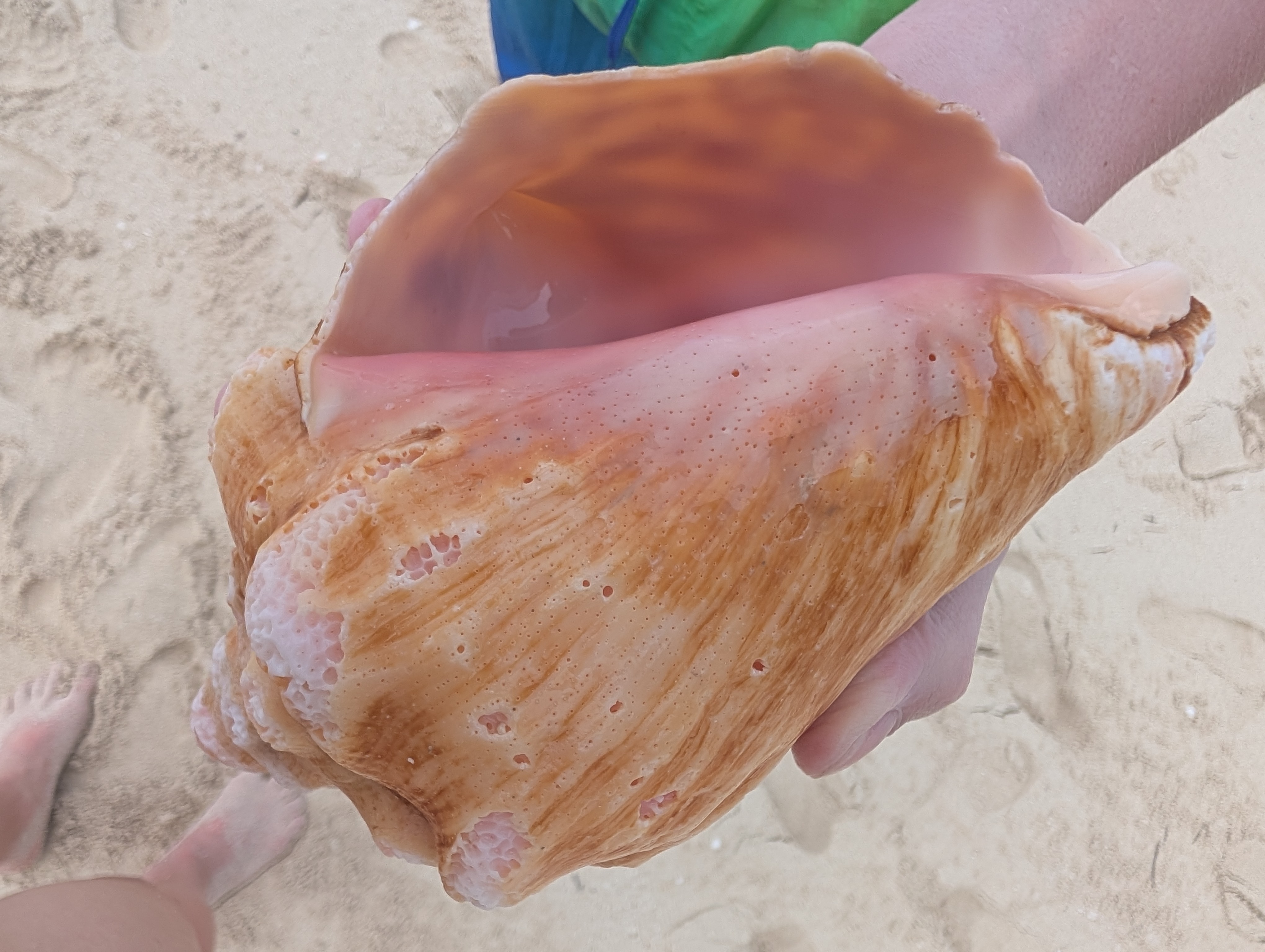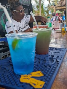 Pak jsme kolem delfíního domu přešli na druhou stranu ostrova a tam už byla Radio Beach. Hned na nejbližším místě vstupu jsme museli zastavit, děti vyběhly k moři a vlastně do odjezdu z něj odešly jen jednou, když umíraly hlady a dostaly něco rychlého k jídlu v místní beach restauraci. Bylo tam strašně moc conshells, takové ty šumící mušle, některé jsou fakt obrovské. Děti jich našly v moři asi 10, některé byly úplně jako z obchodu. Jenže je tam pak musely nechat, protože je zákaz je vyvážet. Dokonce i za pokus o přenesení jsou vysoké pokuty. Tak máme alespoň fotky a v uších šumění :-). Zatímco děti plavaly, my jsme postupně ochutnávaly místní drinky. Některé byly supr, některé byly za trest (ty vždy vyšly na Péťu, to mám ale štěstí 🙂 ). Takže všichni byli naprosto spokojeni. Naštěstí ani nesvítilo slunce, což se po prvním spálení ze včera opravdu hodilo.