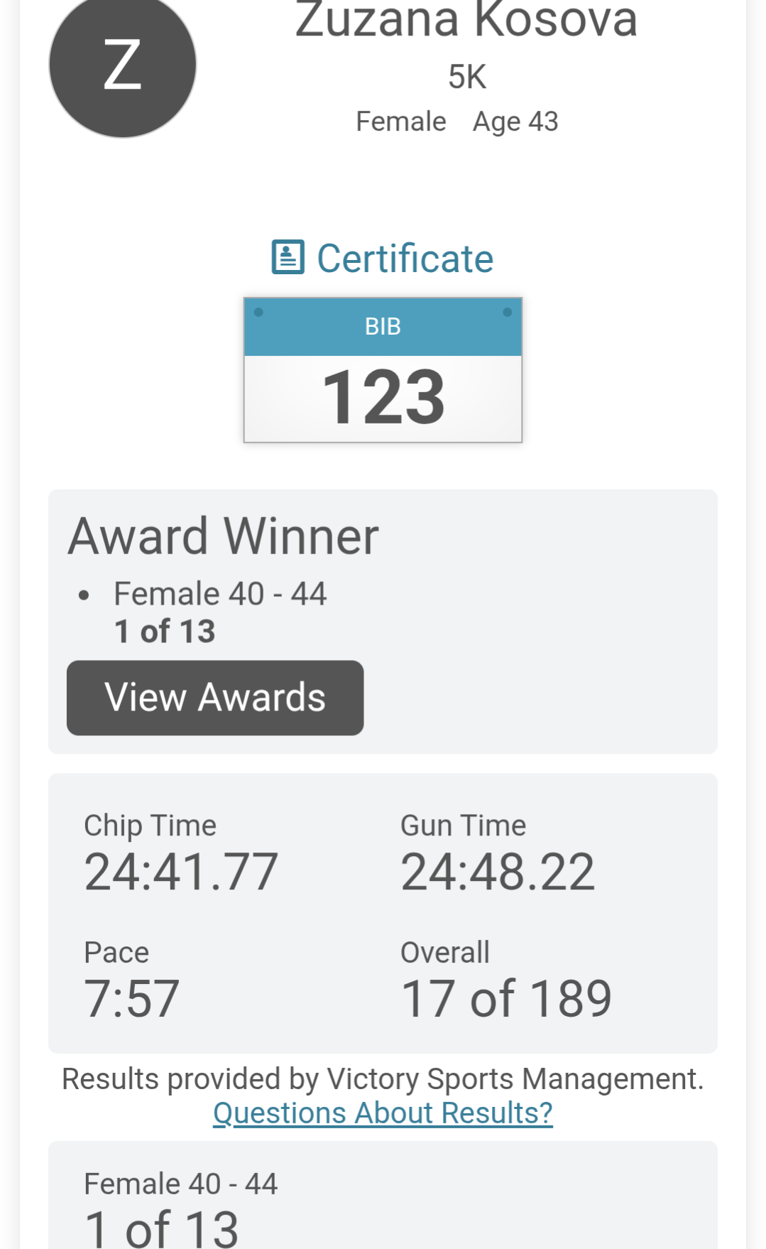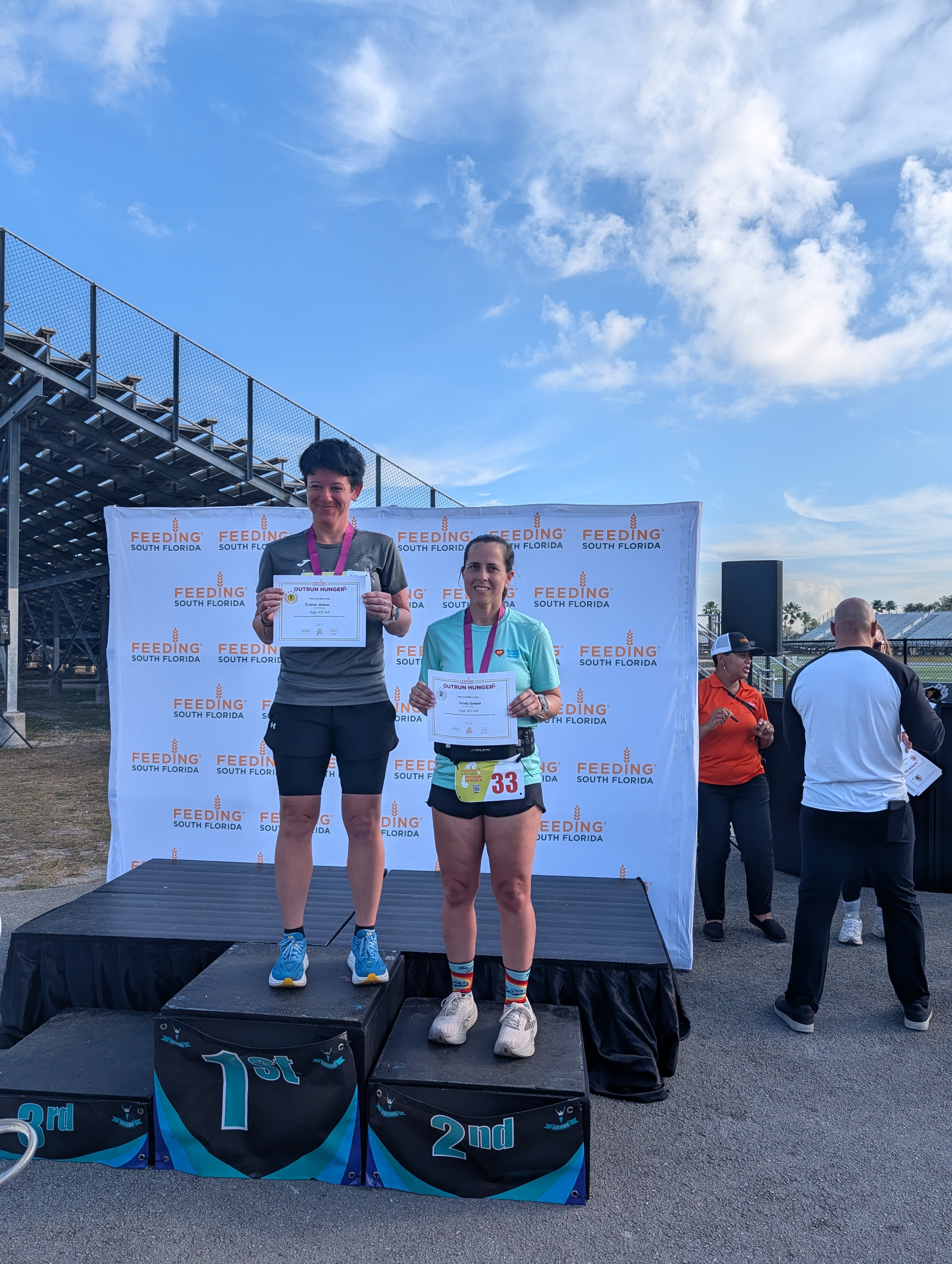 S těmito myšlenkami se předemnou najednou objevil cíl, kde pořadatelé a už doběhlí běžci tleskali a povzbuzovali ty, co přibíhali. Doběhla jsem do cíle, dostala spoustu pití a ovoce, rychlejší bežci si přišli plácnout, fakt tam byla supr atmosféra. Když jsem si šla pro batoh, že teda půjdu, řekli mi, že mám počkat na vyhlášení, že se vyhlašují věkové kategorie a fakt nemám odcházet. Tak jsem alespoň trošku uschla a poslechla si příběh závodu. Je to charitativní běh pro jídla bezdomovcům. Celé startovné a vše, co se sesbíralo, půjde jim. Dokonce dvě starší paní, co i běžely, přispěly 1000 porcemi (4000 dolarů), bylo to až dojemné. Vyhlašování bylo rychlé a opravdu jsem skončila na prvním místě :). Takže jsem nakonec byla ráda, že jsem se dokopala k tomu jít tam..