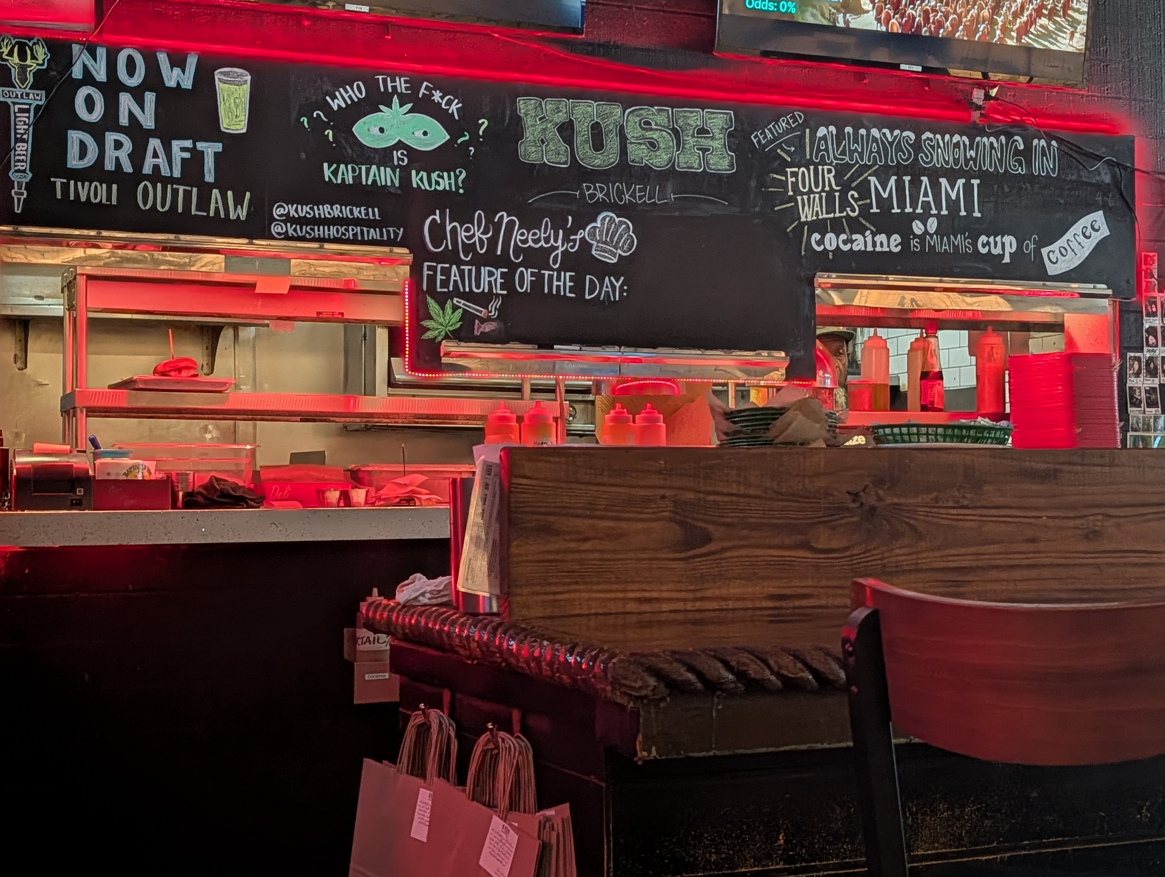 Mezitím přišel email, že check in na zítřejší loď končí v 7 ráno (jedeme v 9) a odjezd je z Port Everglades, což je 50km od nás. Takže musíme jet v 5:15 z hotelu, cesta může trvat až hodinu a čtvrt.. tak jsem se snažila zase změnit to, že snídani stihneme a domluvit její přesun na další den. Pán na recepci řekl, že mi místo toho dá jiné jídlo a za lístek se dvěma snídaněmi jsem odcházela s dvěma krabičkama tortil, dvěma sendviči a džusy.