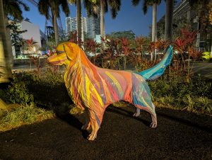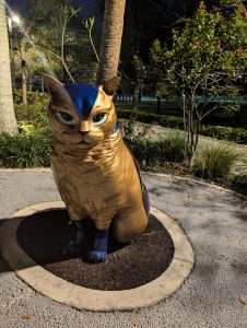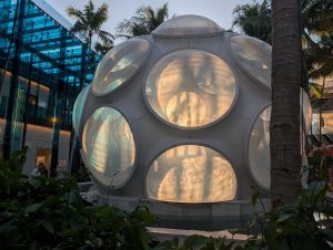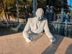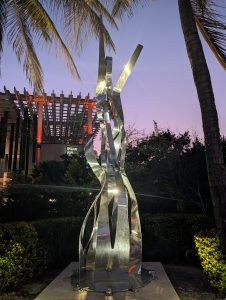 Dál jsme vyzkoušeli autonomní metro bez řidiče, které jezdí nad městem, to bylo taky skvělé. Dojet autobusem do Design districtu už bylo fakt jednoduché, dokonce jsem mohla zastavit autobus zataháním za šňůrku :). Design District byl zajímavý akorát pro Verču, je to něco jako naše Pařížská, působili jsme tam trošku jako vidláci.. A jelikož byl dobrý čas, šli jsme k hale pěšky a stihli jsme si projít ještě i park u haly s krásnými sochami a výhledem na moře a na jachty.