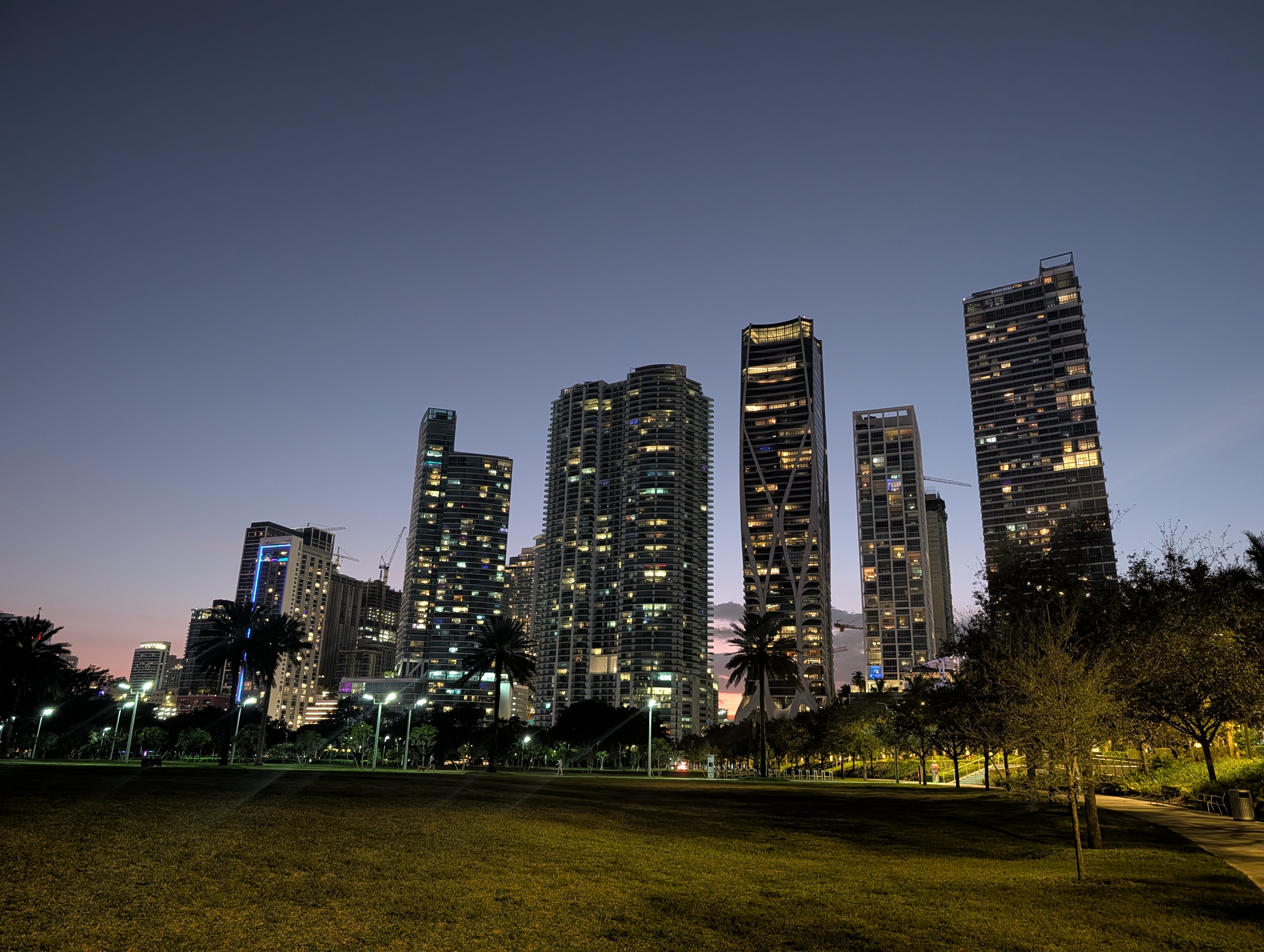 Poslední místo v plánu byl Key Biscaine a tam západ slunce. Tam nás čekala první jízda MHD s nepříjemnou řidičkou, která nám řekla, že se nedají zaplatit 4 jízdenky jednou kartou, že máme mít 4 různé platební karty, takže jsme nakonec nic neplatili. Čas byl dobrý, takže u přestupu v Brickellu jsme měli čas se ještě podívat na mrakodrapy a pak najít zastávku na autobus na Key Byscaine. To jsme už zvládli levou zadní a vystoupili cca 30min od vyhlídky na západ slunce. Je to státní park, takže jsme ještě platili vstupné, ale jen za dva lidi, protože už bylo pozdě :). Západ byl úžasný.. nad mořem nebo jinou vodou je vždy pohádkový. Pak jsme rychle šli zpátky, protože podle Movitu měl jet autobus zpátky. Když jsme ale docházeli asi o 5min dřív na zastávku, viděli jsme, jak se tam dva naše autobusy otáčí (je to konečná), jeden dal blikačky.. ale než jsme tam přišli, oba za sebou odjely. Tady jsme pochopili, že neexistují jízdní řády, že autobus přijede až mu to vyjde. A další mi to ukazovalo za půl hodiny.. takže jsme si popošli několik zastávek, stihli nakoupit a pak přijeli zase dva autobusy. Tentokrát byl řidič opravdu nepříjemný nepříjmená řidička z první jízdy je proti tomuhle slabý odvar. Chtěl jen cash, ale za každého zvlášť a nic se nevracelo, takže kdybych měla jen 20ti dolarovky, musela bych místo 2.25 za jeden lístek zaplatit 4 x 20$. Nakonec jsem tam dala dvě pětidolarovky a mohla jsem jít. Zkušeně jsme přestoupili na vlak a dojeli až k hotelu. Jen s vybitými mobily jsme skoro nenašli hotel. Naštěstí se povedlo hotel najít.