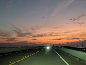 Budík ráno zněl ještě hůř než obvykle. Ale museli jsme se nasnídat a ještě vyzvednout auto a pak jet na Key West, kde jsme měli zarezervované lodičky. Snídaně nás trochu probrala, takže jsme vesele vyrazili pro auto. Dostali jsme automat Hyundai Elantru, šikovné auto, se kterým se mi povedlo dokonce vyjet ze servisu (muselo být pujčené na mě, protože jen já jsem měla kreditní a nedebitní kartu a tu tam potřebovali kvůli vratné záloze a krytí škod), i když jsem si omylem nějak zapla ruční řazení. Pak už to byla pohoda.. děti usnuly, takže to byly čtyři hodiny na jeden zátah, ale zase to byla krásná cesta, kde po obou stranách bylo moře a my občas jeli po mostě spojujícím tzv. keys, fakt úžasné.