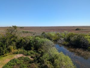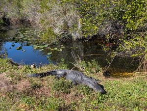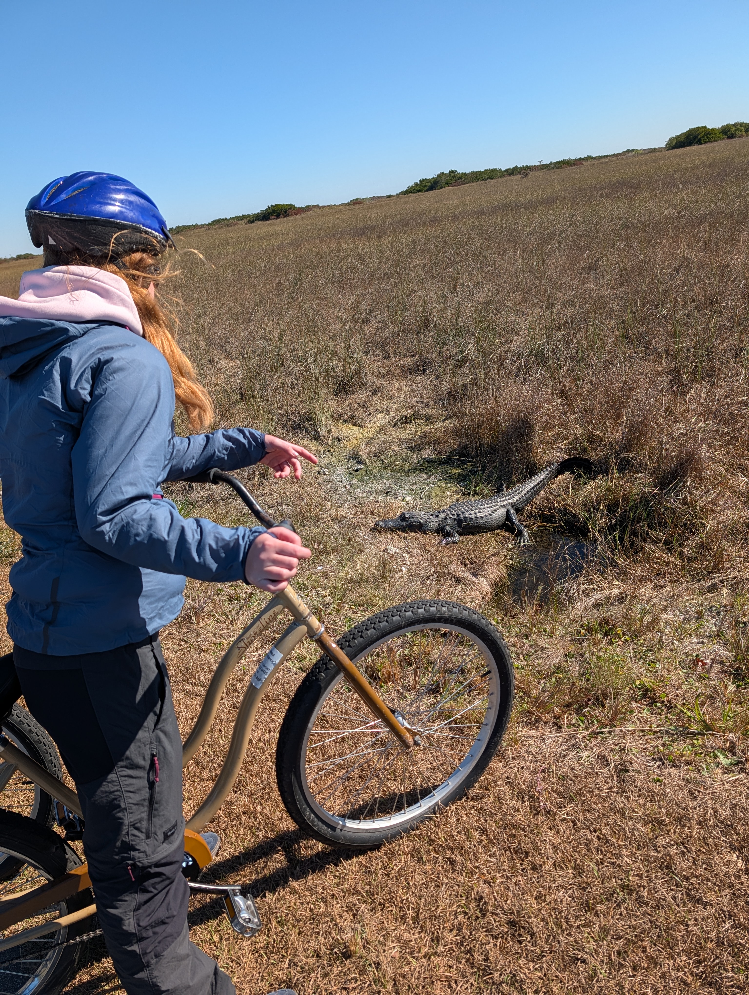 Budík zazvonil v 6 hodin. Nálada byla pod bodem mrazu, a to nejen proto, že se venku opravdu o 10 stupňů ochladilo. V 6:30 jsme sjeli dolů na snídani (to měli otevírat), ale dalších 15 minut se tam jen dělala fronta, ale nebyla tam žádná obsluha. Když pán přišel, radši jsme si nechali zabalit jídlo s sebou, abychom včas vyjeli, ale ani to nepomohlo a vyráželi jsme v 7:15, po 45min čekání. Cesta byla naštěstí ale úplně v pohodě, zácpy byly na druhou stranu – směrem do Miami, auta tam stála už 20km před Kendallem (naše čtvrt Miami). K parku Shark Valley v Everglades jsme dorazili kráte po osmé (podle plánu), aby na nás vyšla nerezervovaná kola. Už takhle jsme byli asi páte auto ve frontě, protože vjezd otevírali až v 8:30. Za pár minut po našem příjezdu už byla plná celá příjezdová cesta a auta čekala i na dálnici. My jsme se v klidu nasnídali a když otevřeli bránu, zaplatili jsme vstup a Trumpův poplatek pro neobčany USA (máme dražší vstup do NP o 100 dolarů.. od letoška. Supr.). Zaparkovali jsme blízko Visitor centra a opravdu jsme ještě dostali kola. Sice starší model, děti nejdřív hledaly brzdu, která tam nebyla :), ale hlavně, že jsme je měli.