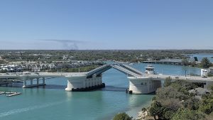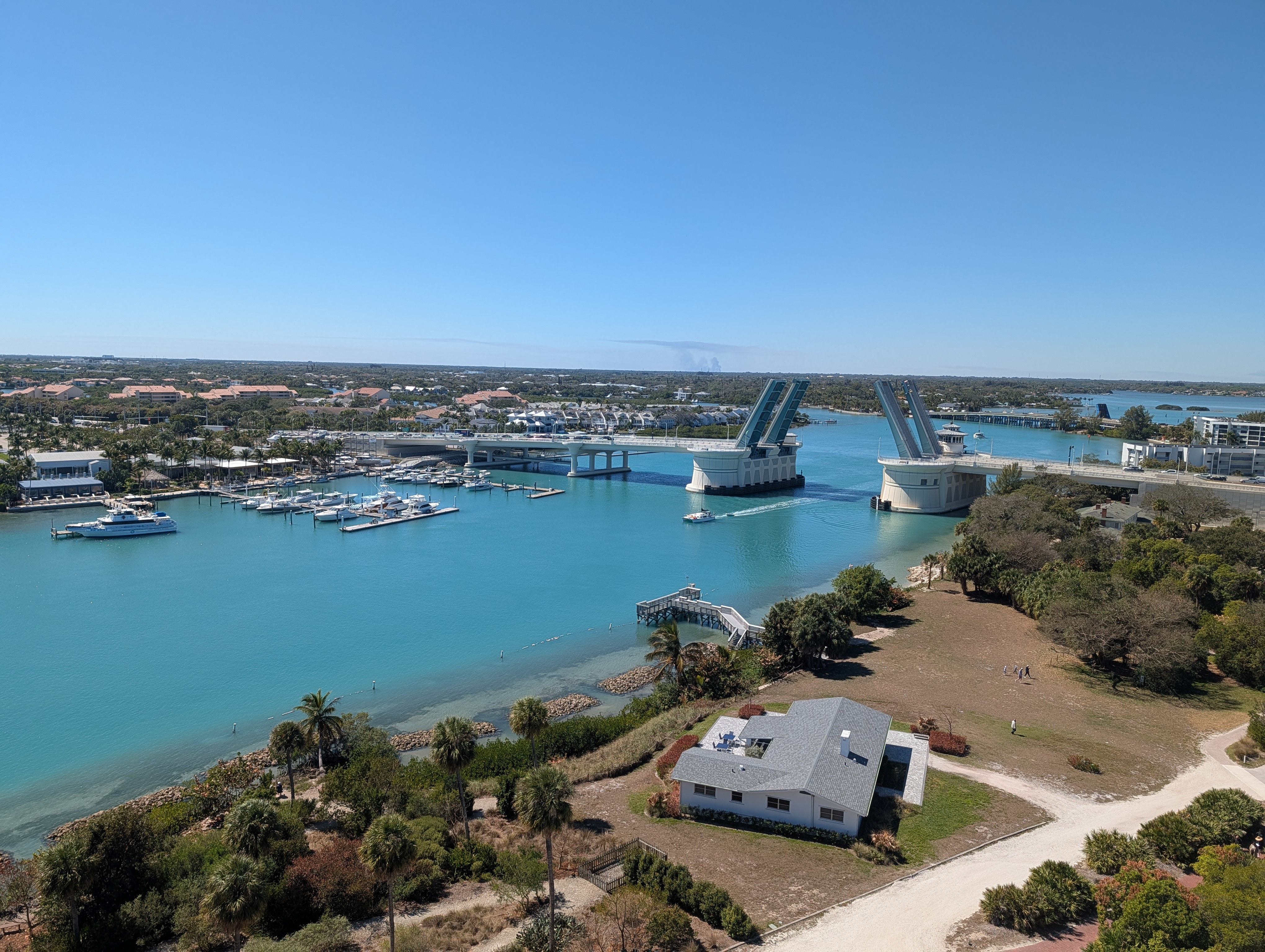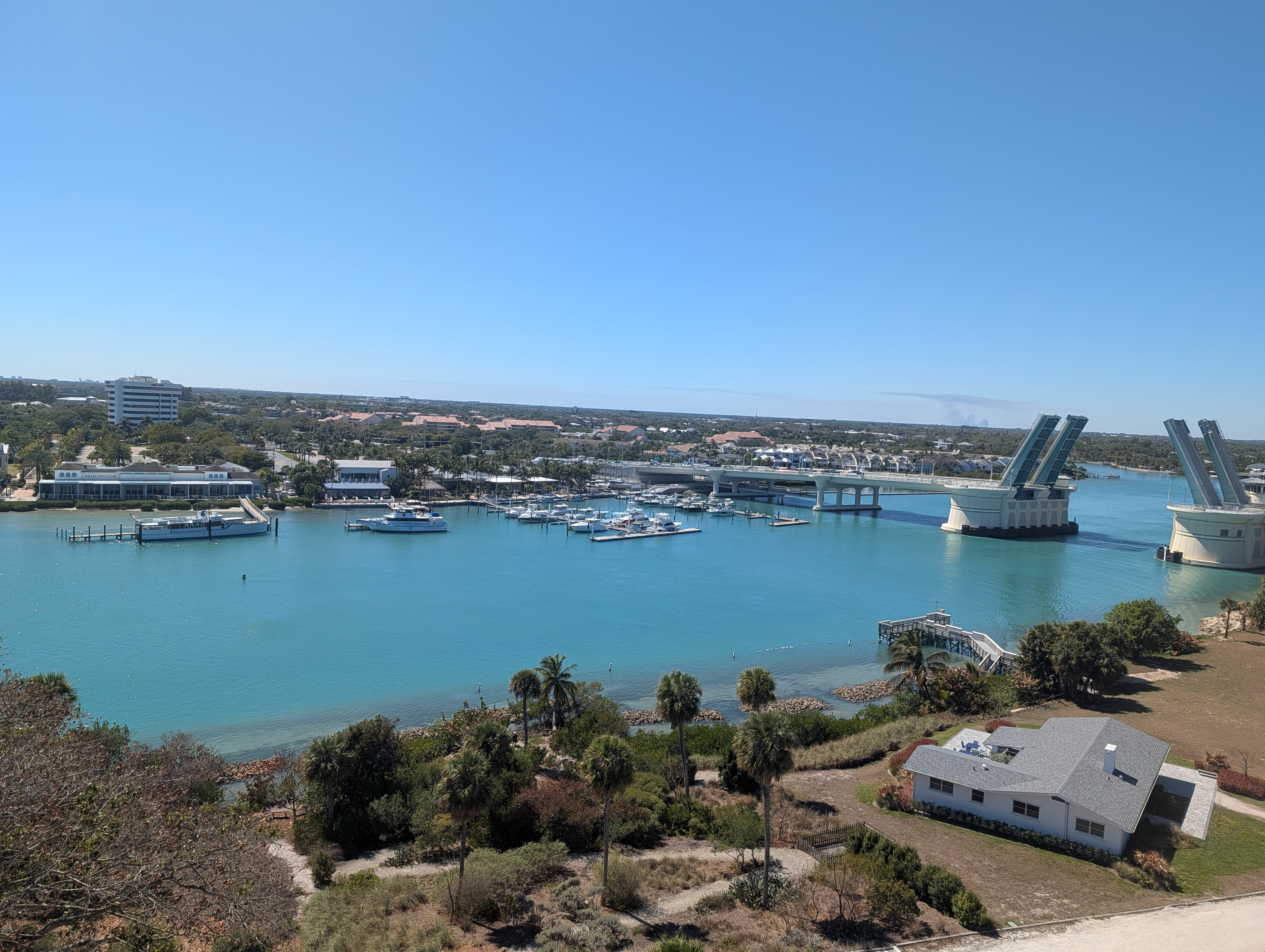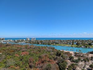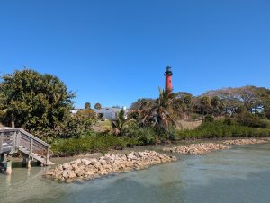 Dnes byl na programu přesun z Miami na Cocoa Beach pod Mysem Caneveral, kde měli v 16:04 vypustit raketu. Původní plán byl jet celou cestu podél pobřeží, ale to nám ukazovalo skoro 6 hodin a jelikož jsme na pláži chtěli být zhruba jednu hodinu předtím, museli bychom vyrazit v 9 a to se nám opravdu nepovedlo, dosnídali jsme v půl desáté. Postupně se plán trasy měnil na rychlejší a rychlejší variantu, cestou jsme ještě chtěli zastavit u majáku (Jupiter Inlet Light) a nakoupit nějaké jídlo. Cestou jsme ještě viděli starého pána v luxusním kabrioletu, jak se cestou holí :-). Maják byl supr, po zaplacení vstupného jsme dostali nálepku na mikinu a mohli jsme jít dovnitř do areálu. Tam jsme mohli na molu pozorovat kapustňáky nebo vystoupat na maják (celkem asi 100 schodů). Než nás pustili na schody, měli jsme přednášku o tom, co můžeme a nemůžeme dělat na schodech, jak se máme držet vpravo, máme dávat pozor na 6. schod sezhora, úplně nahoře se vůbec nevyklánět, protože fouká a je tam nízký strop. Museli jsme počkat, než sejdou dva jiní lidi dolů, pak se dva hlídači dole vysílačkou domluvili s dalšíma nahoře, že jdeme a mohli jsme pokračovat nahoru. Nahoře byla malinká plošinka a na ní dva další hlídači, kteří nás varovali před nízkým stropem, vysokým schodem ap :-). Nahoře byl úžasný výhled na severní Palm Springs a zrovna když jsme tam byli, tak byl otevřený most pro dvě projíždějící jachty, takže jsme viděli i jeho zavírání. Po nákupu jídla jsme zjistili, že už nemáme tolik času, jak jsme si mysleli a zbytek cesty jsme přesměřovali na dálnici, abychom to v klidu stihli. Jelikož byla téměř půlka cesty, vyměnili jsme se a řídila jsem já.