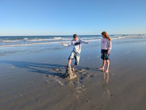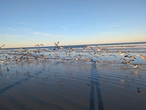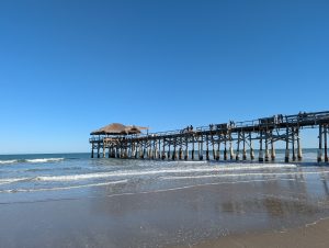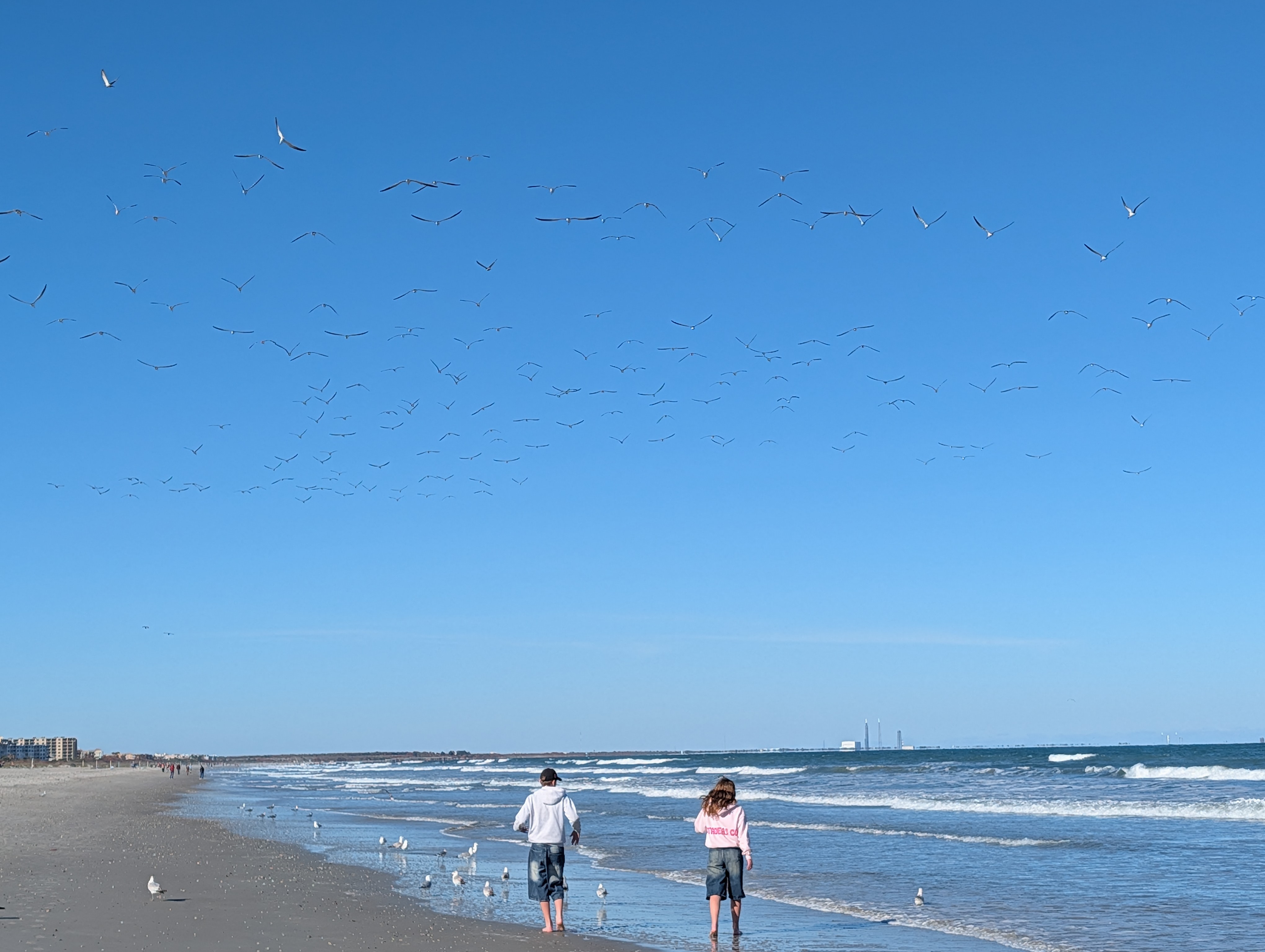 Na pláži jsme si hned dali tzv. buzz ball, míchaný nápoj v plastové kouli 🙂 a pokračovali dál, dokud jsme nebyli spokojeni s místem a vyhlídkou. Odpočítávali jsme minuty do startu, pláž byla celkem prázdná, místní jsou asi zvyklí a v pracovní den se sem davy nehrnou (prý je mnohem víc lidí, když je start v noci, protože to je “efektnější”). Přesně v 18:04 jsme koukali na start a po chvilce zjistili, že koukáme jinam, že raketa vystartovala víc vlevo :-), no a pak už jsme viděli opravdu obrysy rakety, za ní plamen, jak letí nad oceán. Po cca 25 vteřinách dorazil i zvuk a byl to teda šílený hřmot (pokud takové slovo existuje). Byl to opravdu zážitek k nezaplacení, i dětem jsem se snažila vysvětlit, že tohle je opravdu něco neobyčejného. A pak jsem si uvědomila, že za 10 let to možná bude tak normální jako lety letadlem :-).