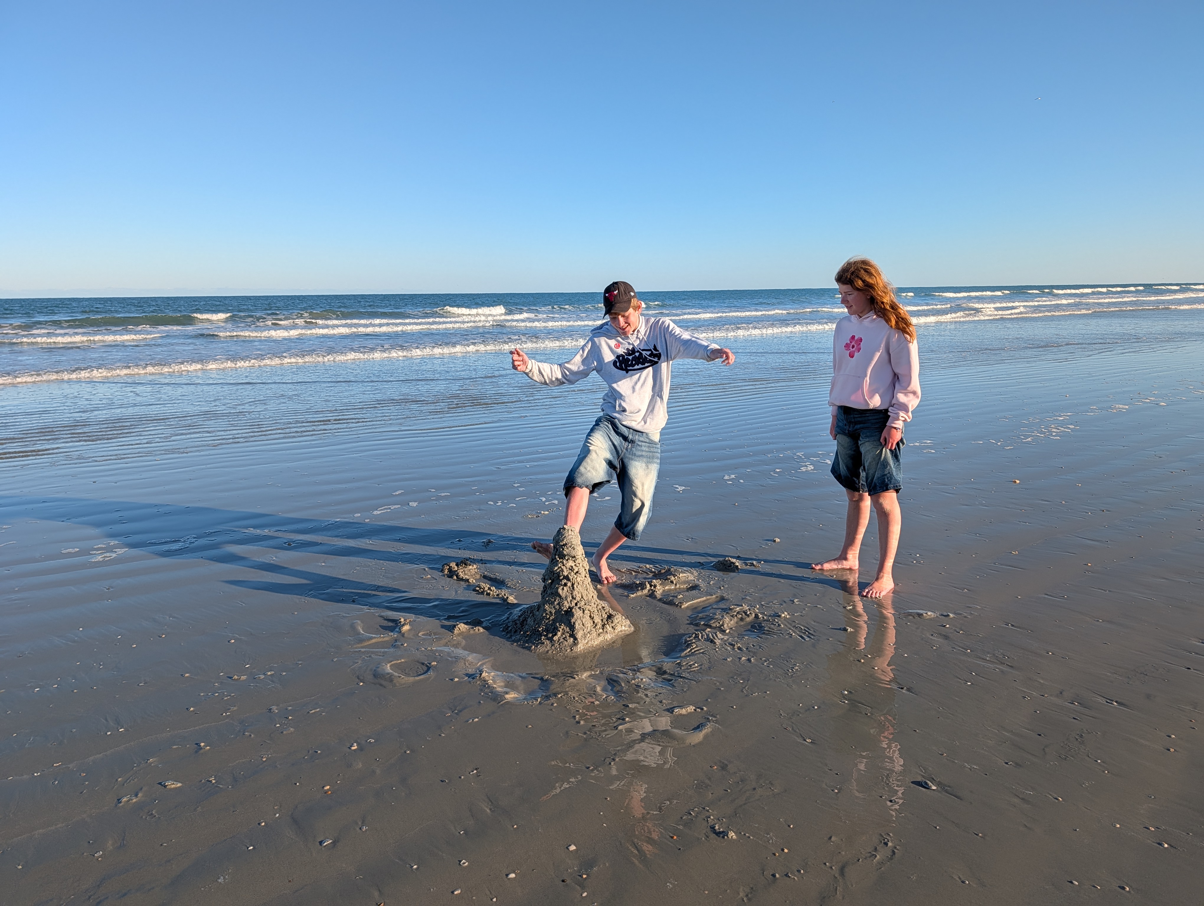 Když jsme se vrátili na pokoj, děti šly k moři, já běhat po pláži (bylo to mých nejdelších 10 km v životě, protože zpátky byl takový protivítr, že jsem couvala) a pak jsme šli na večeři zase do irské restaurace, abychom to měli i s procházkou. Cestou jsem se ještě zastavila v obchodě, zda nenašli kartu (málem jsem se tam nedostala, nebyl tam přechod a musela jsem přebíhat dvě tříproudové silnice). Kartu našli a dokonce mi jí dali, takže tohle skončilo happyendem. Jen když jsme vešli do irské restaurace, kde byli normálně lidi, číšnice řekla, že se omlouvá, že mají zavřeno (přitom tam bylo fakt dost lidí) a skončili jsme v italské restauraci cestou k hotelu. I když měly děti hlad, půlku jídel jsme si nechali zabalit.. do toho jsme koukali na NBA (což se nám pak už nepovedlo naladit v TV na pokoji) a hráli karty, celý den jsme zakončili procházkou k hotelu. Nebo spíš motelu, je to takový typický americký motel, který má dvě patra, pokoj je malý, má tenké zdi a v šest ráno nám někdo cizí klepal na dveře :-). Naposledy jsem tohle viděla v Advokátovi a pak tam Cisca, který přespával v něčem podobném, skoro zastřelili. No, tak jednu noc ještě dáme.