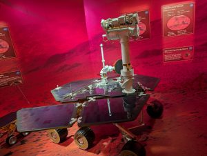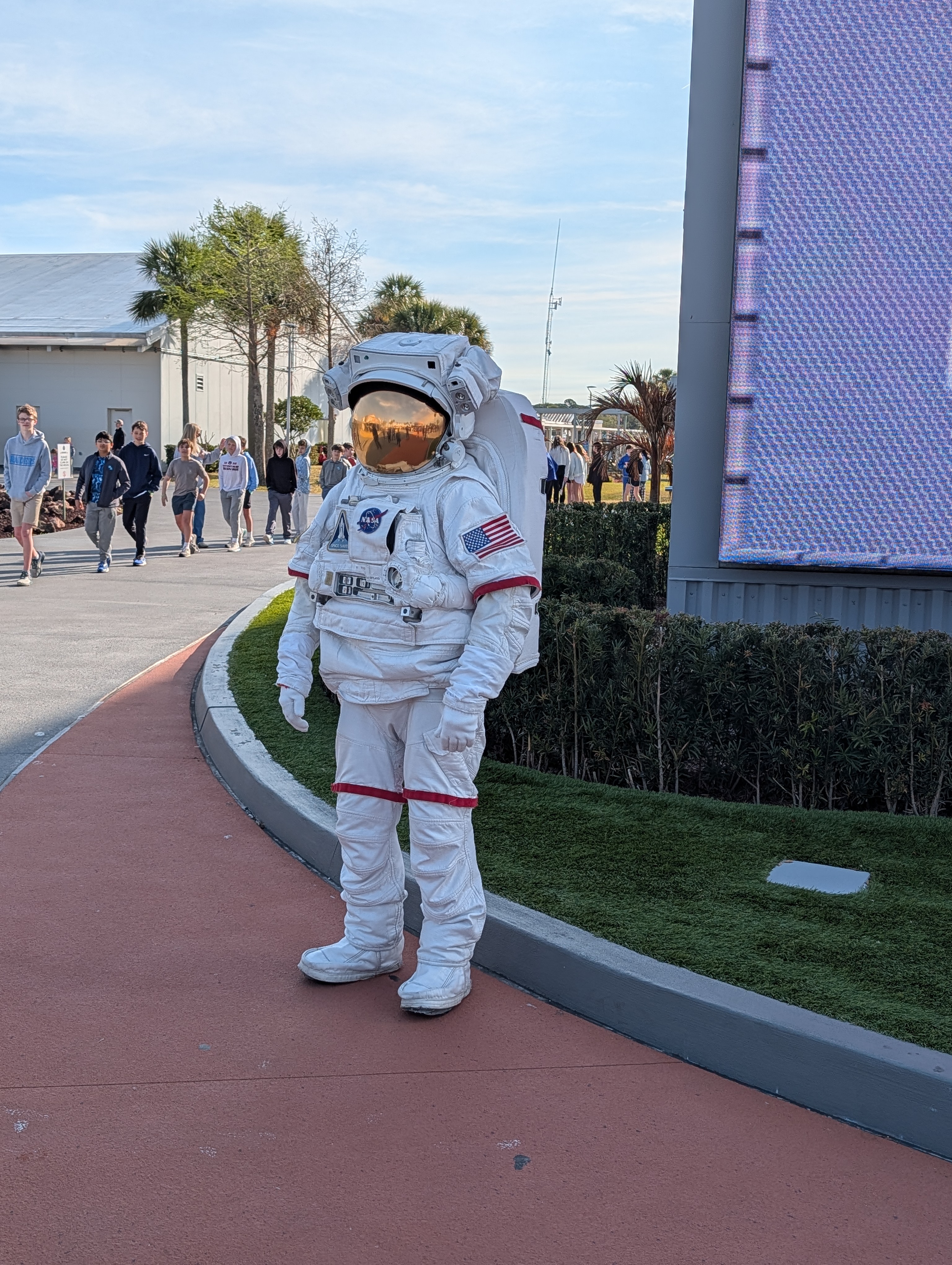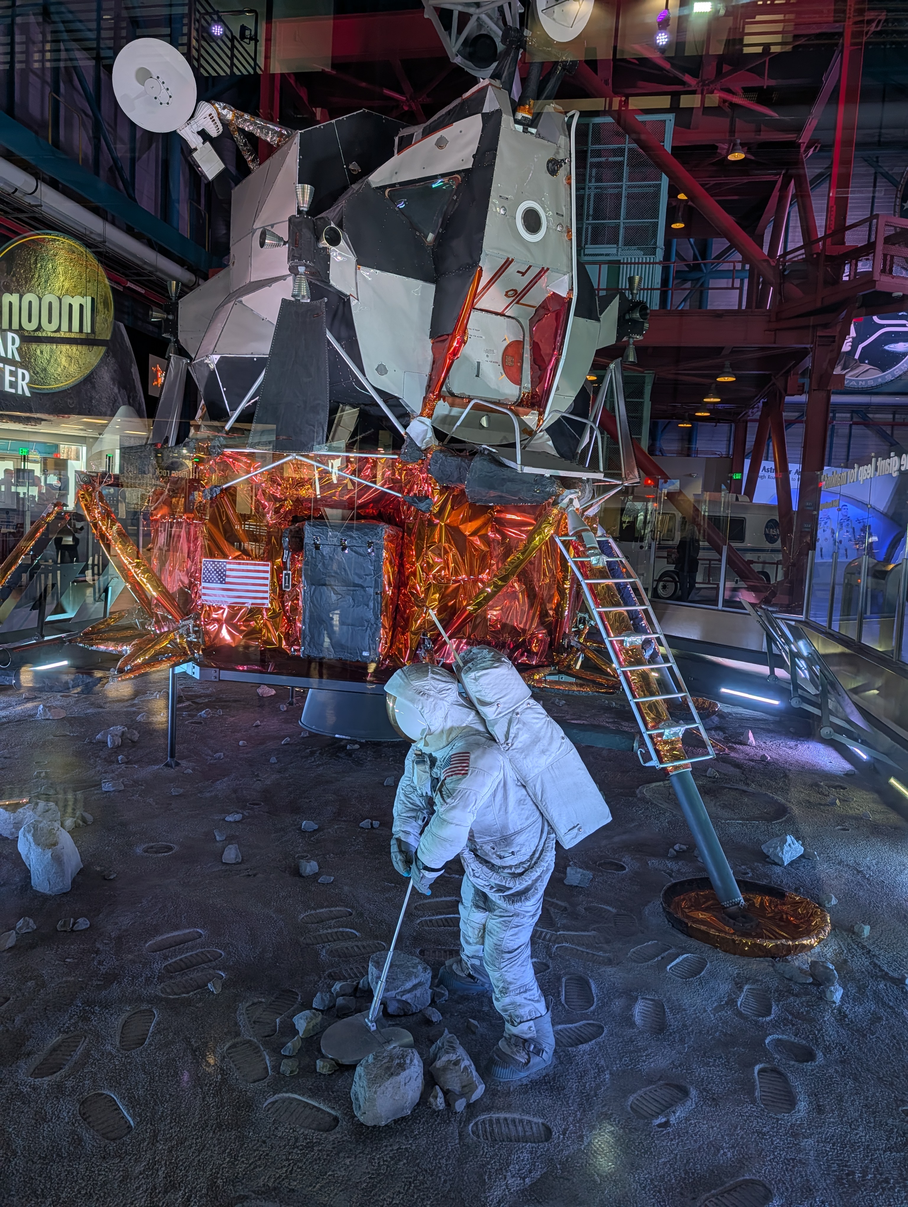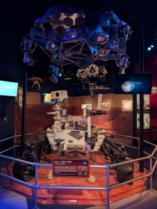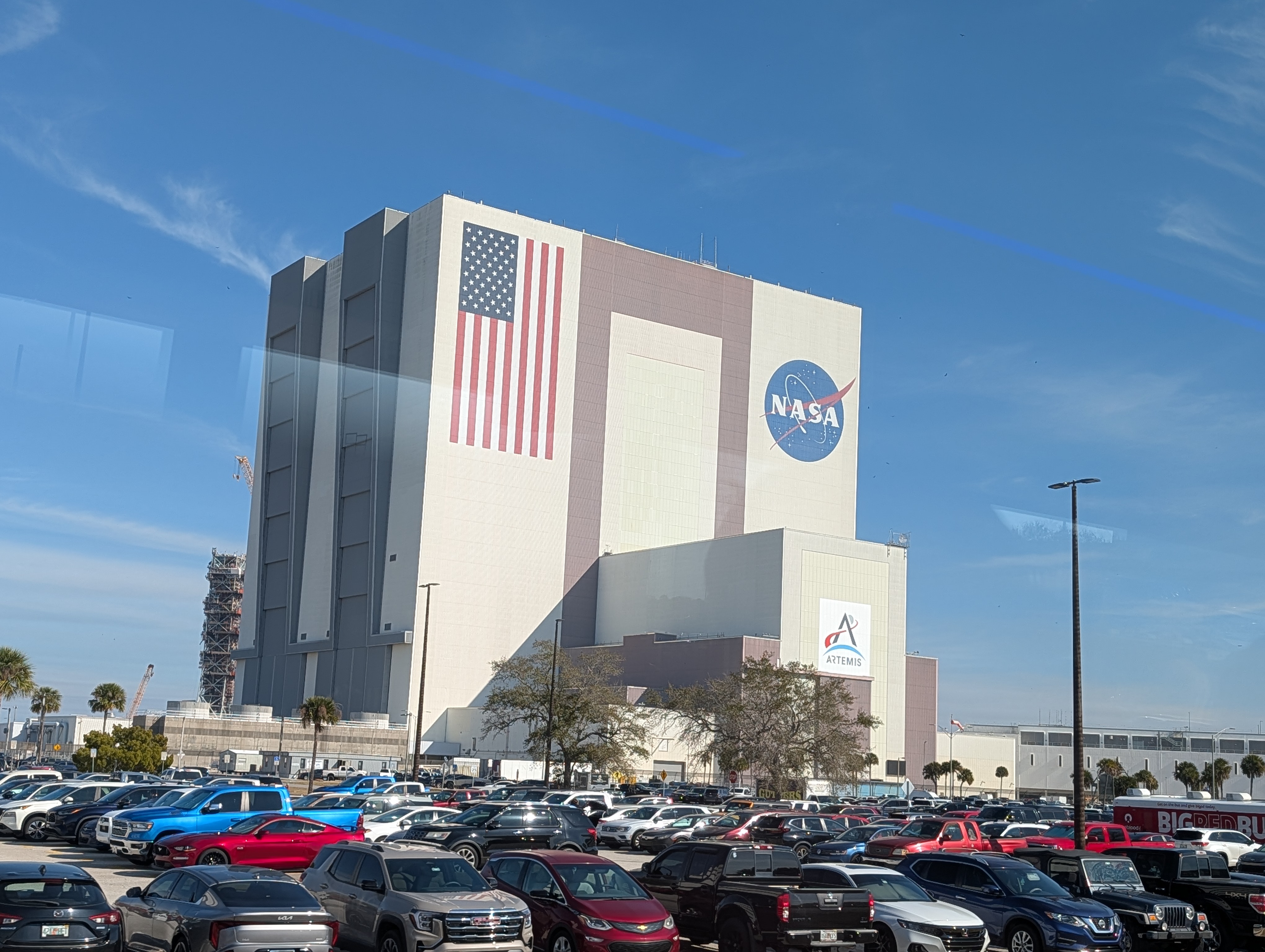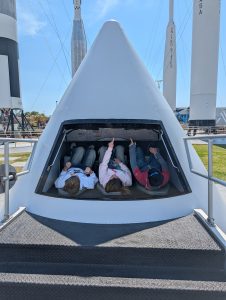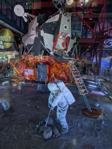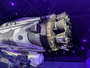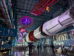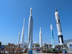 Poté jsme se vrátili zpět do hlavního areálu (a zjistili jsme, že všichni měli stejné informace jako my, takže fronta na autobusy byla jen ráno, přes den už ne :-)). Obecně tam bylo strašně málo lidí, asi jak je pracovní den – v několika halách jsme byli opravdu skoro sami. Dále jsme viděli Space Shuttle Atlantis s interaktivním simulátorem startu, Gateway: Deep Space Launch Complex s informacemi o Artemis a misemi na Mars, 5d kinem, různými lunárními vozidly, rocket garden s opravdovými historickými raketami a samozřejmě gift shop. Za sebe musím říct, že to bylo opravdu silné, vidět opravdové rakety a vlastně zjišťovat, jak to všechno funguje, je to fascinující. Ještě nás překvapilo, kolik lidí tam pracuje. U Vehicle Assembly Building, což je jedna z největších budov na světě podle objemu (výška cca 160m, skládaly se tady např. Saturn V nebo raketoplány) stály stovky zaparkovaných aut zaměstnanců. Ono i v dokumentu o historii raketového průmyslu bylo řečeno, že za prvním startem rakety NASA stálo 300 000 lidí, což je neuvěřitelné množství.