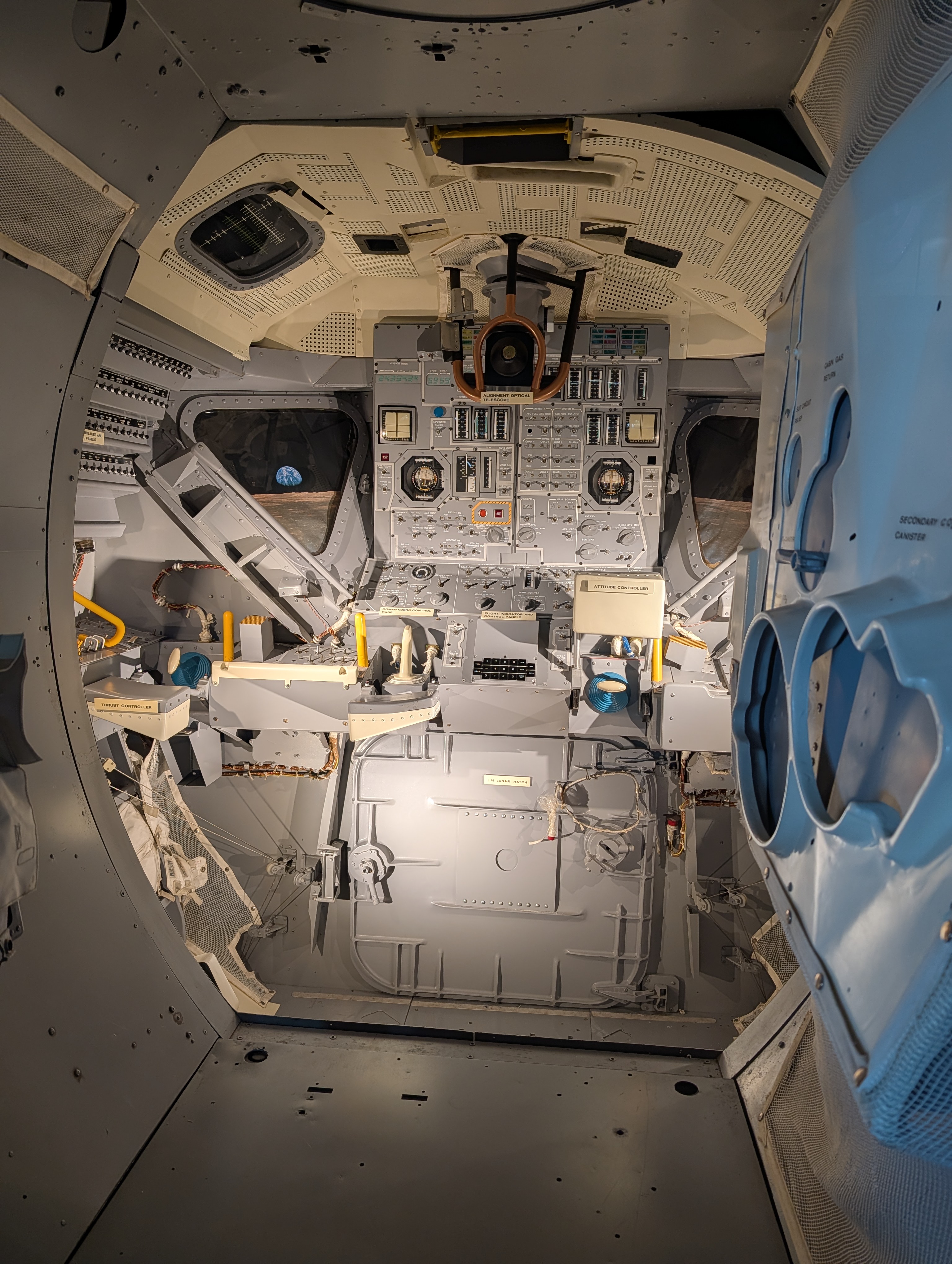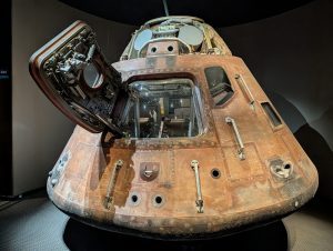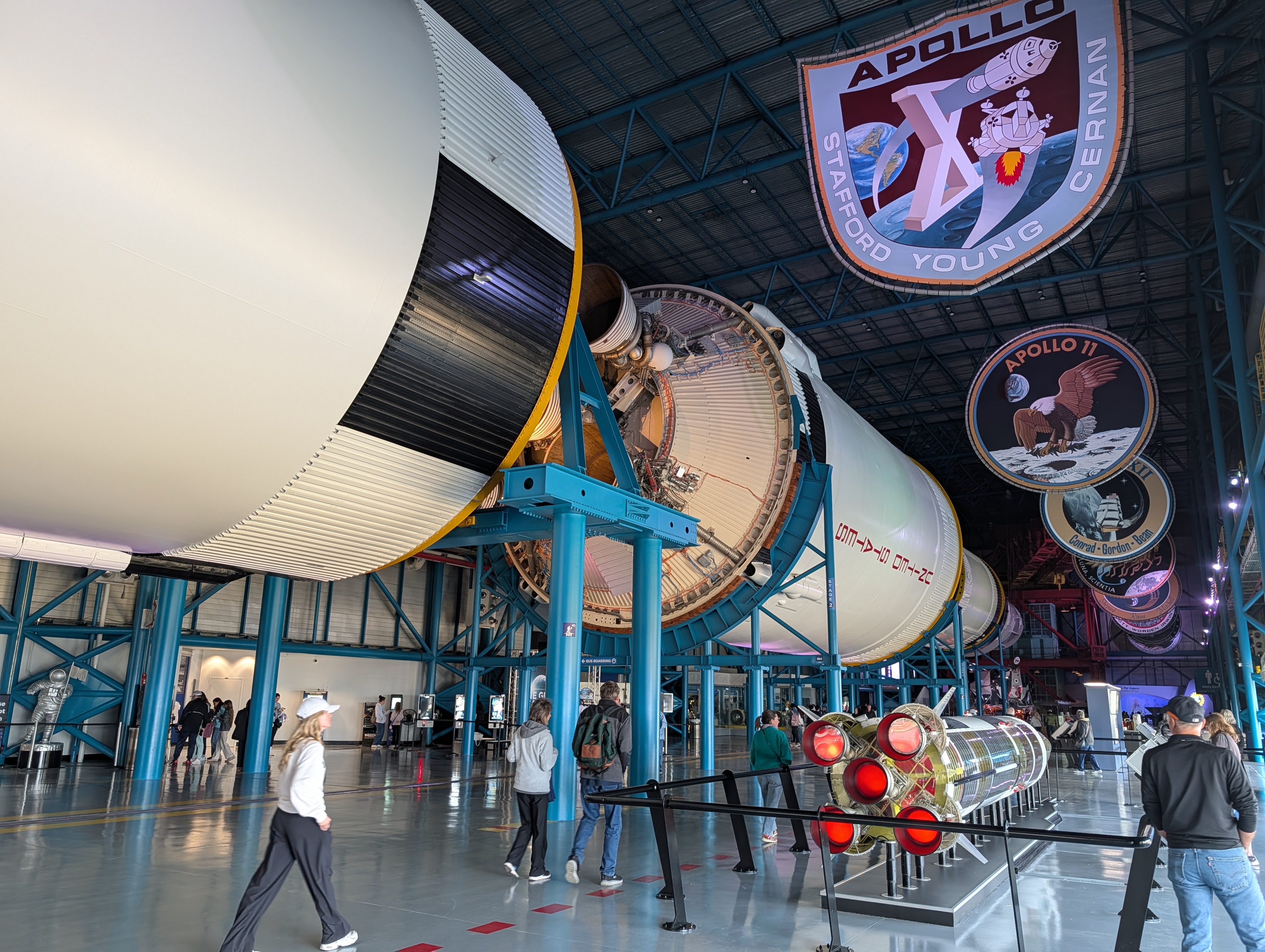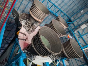 Druhá zastávka autobusů byla Apollo / Saturn V. Tam jsme viděli historii startů raket v NASA a simulaci startu s reálným komentářem. Poté jsme se dostali do obrovské haly, kde byla opravdová raketa Saturn V, měsíční moduly, expozice o navigaci, počítačích, řízení mise ap. A mohli jsme si sáhnout na opravdový kámen z Měsíce :-).