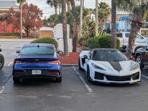 Lyft je objednaný na 5:15, auto ještě zítra nebudeme potřebovat, takže zatím neřešíme ani to, že hotek nemá svoje parkoviště ap :).