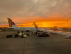 Přestup byl nudný, normálně jsme došli ke správné gate. Nebylo moc času, tak jsem si chtěla koupit kafe, ale až u správné gate. Tam byl stánek z letištní kavárny. Postavila jsem se do fronty a 15min se tato fronta ani nehla. Byla tam pomalejší paní, která uměla jen portugalsky, vše dělala strašně pomalu a po každém zákazníkovi začala doplňovat zboží. Když jsem přišla na řadu já, tak se nejdřív schovala za kávovar, tak jsem zkoušela mluvit na něj, ale moc to nefungovalo. Po chvilce paní pochopila, že se neschová a s povzdechem se zeptala, co teda chci. Neuměla flat white ani espresso, takže jsem si objednala cappucino a espresso a namíchala si flat white sama. Mezitím Péťa hlídal a měl mi dát vědět, kdyby začal náš boarding. Sice hlídal špatnou gate, ale na ní opravdu ještě boarding nezačal.