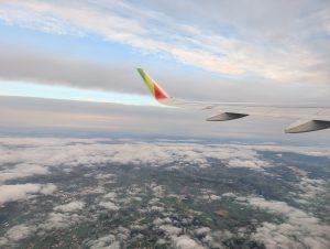 Trošku nás ty formalitky kolem zdržely, takže před odletem nebyl čas na pořádný drink. Naštěstí jsme si koupili alespoň víno a prosecco, takže jsem se do letadla těšila. Trošku blbé bylo, že otevření prosecca budou všichni v letadle slyšet, ale to se nedá nic dělat.. a ještě bylo úplně plné letadlo a i dětské malé kufry jsme mohli dát do podpalubí. Cesta byla celkem rychlá, vedle mě seděl pán a ukázalo se, že je hodně tolerantní. Jednou jsem na chvíli usnula a zdálo se mi o tréninku nohejbalu, kde jsem se vyklonila do uličky, hlavou bouchla do letušáka a pána vedle kopla, protože jsem zrovna odehrála patu. Pak už jsem se bála zavřít oči, aby se mi nezdálo o něčem nebezpečnějším.